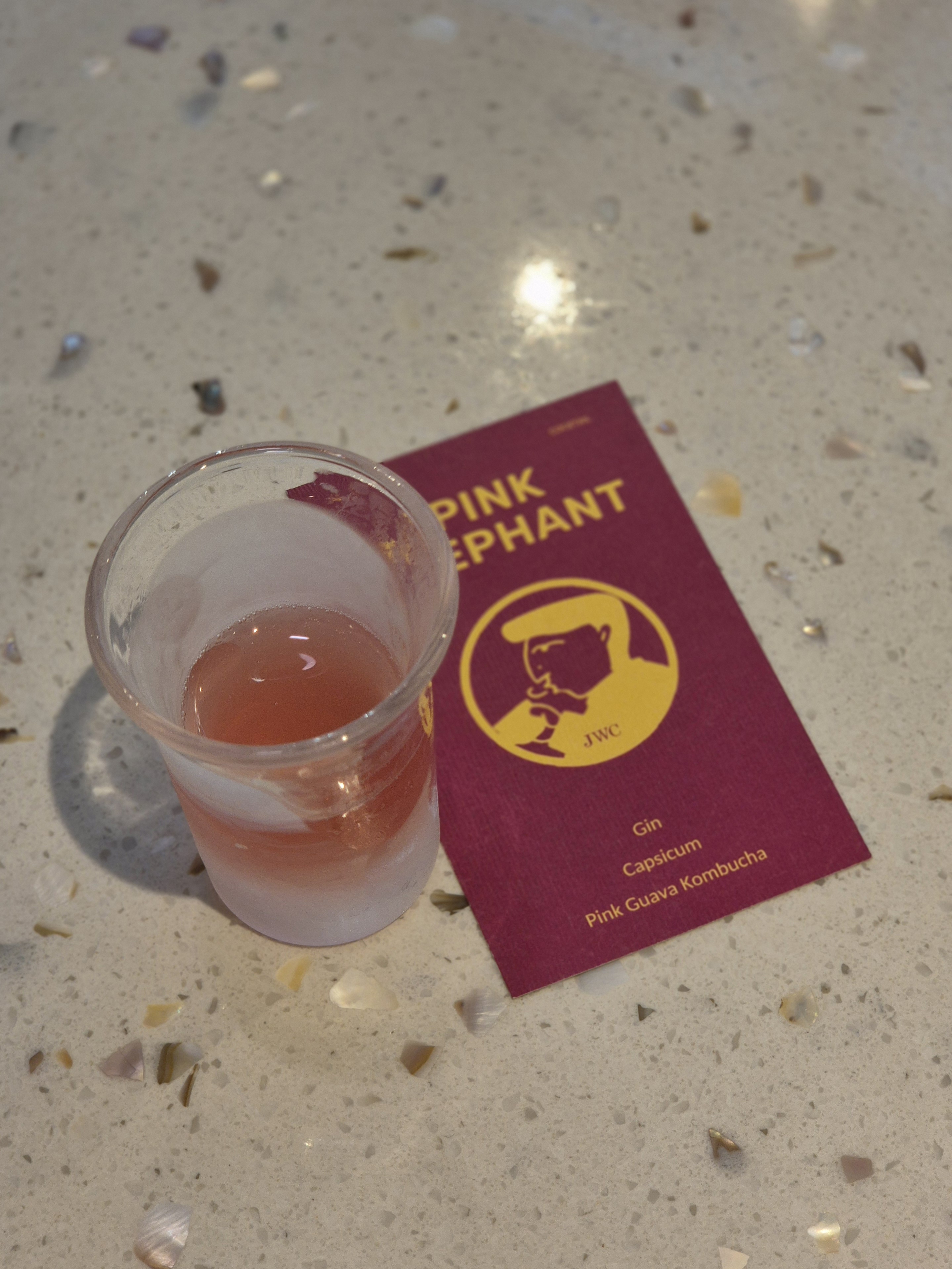 [Pink Elephant]는 Capsicum (피망)과 구아바가 어우러진 조합이라 처음엔 음? (갸웃) 했는데, 한 모금 마셔보니 상큼한 맛에 마지막에 은은하게 느껴지는 피망의 풍미가 색달랐다. 상큼 + 달달이라서 술이 맛이 없어서 못 먹겠다 하는 사람도 충분히 부담 없이 맛있게 즐길 수 있는 [칵테일]이었다.