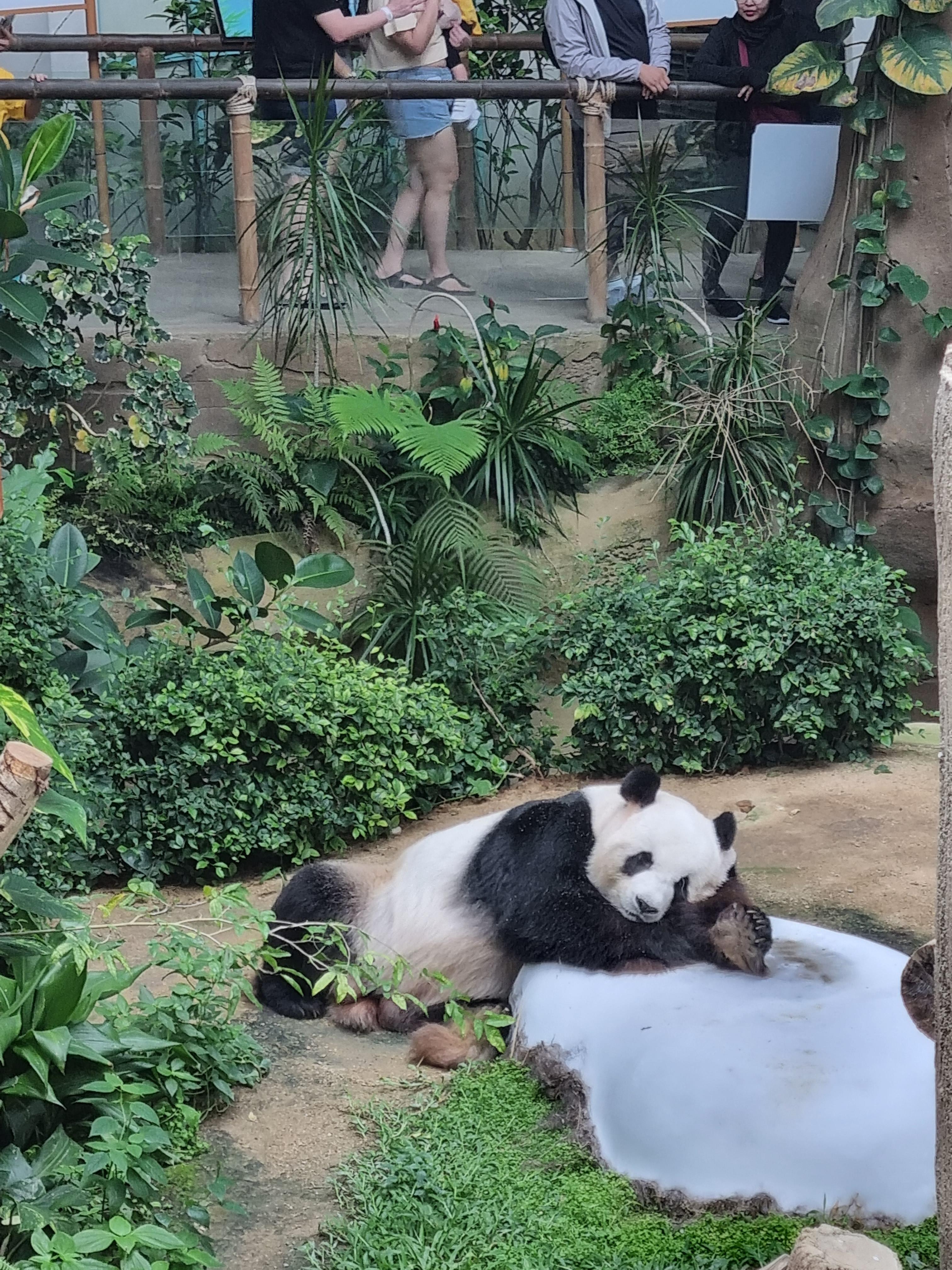 그리고 드디어 마주한 팬더들. 내가 Zoo Negara를 방문했을 때는 마침 한국에서 푸바오 열풍이 한창일 때라 더더욱 기대가 컸고 또 궁금했다. 놀랍게도 말레이시아에서도 팬더들의 인기는 정말 대단했다. 팬더 하우스도 굉장히 잘 꾸며져 있었고, 그 안으로 들어서자마자 감탄이 절로 나왔다. 무엇보다도 너무 시원했다. 넓은 동물원을 돌아다니느라 지쳐갈 무렵, 이 팬더 하우스는 진짜 오아시스 같은 공간이었다. 들어가자마자 에어컨 바람이 솔솔~ 살 것 같은 기분. 그리고 팬더들이 밥 먹는 모습도 보고 뒹굴뒹굴 하는 그 모습도 너무 귀엽고 팬더들을 뭘 해도 그냥 다 너무 귀엽고 사랑스러웠다.