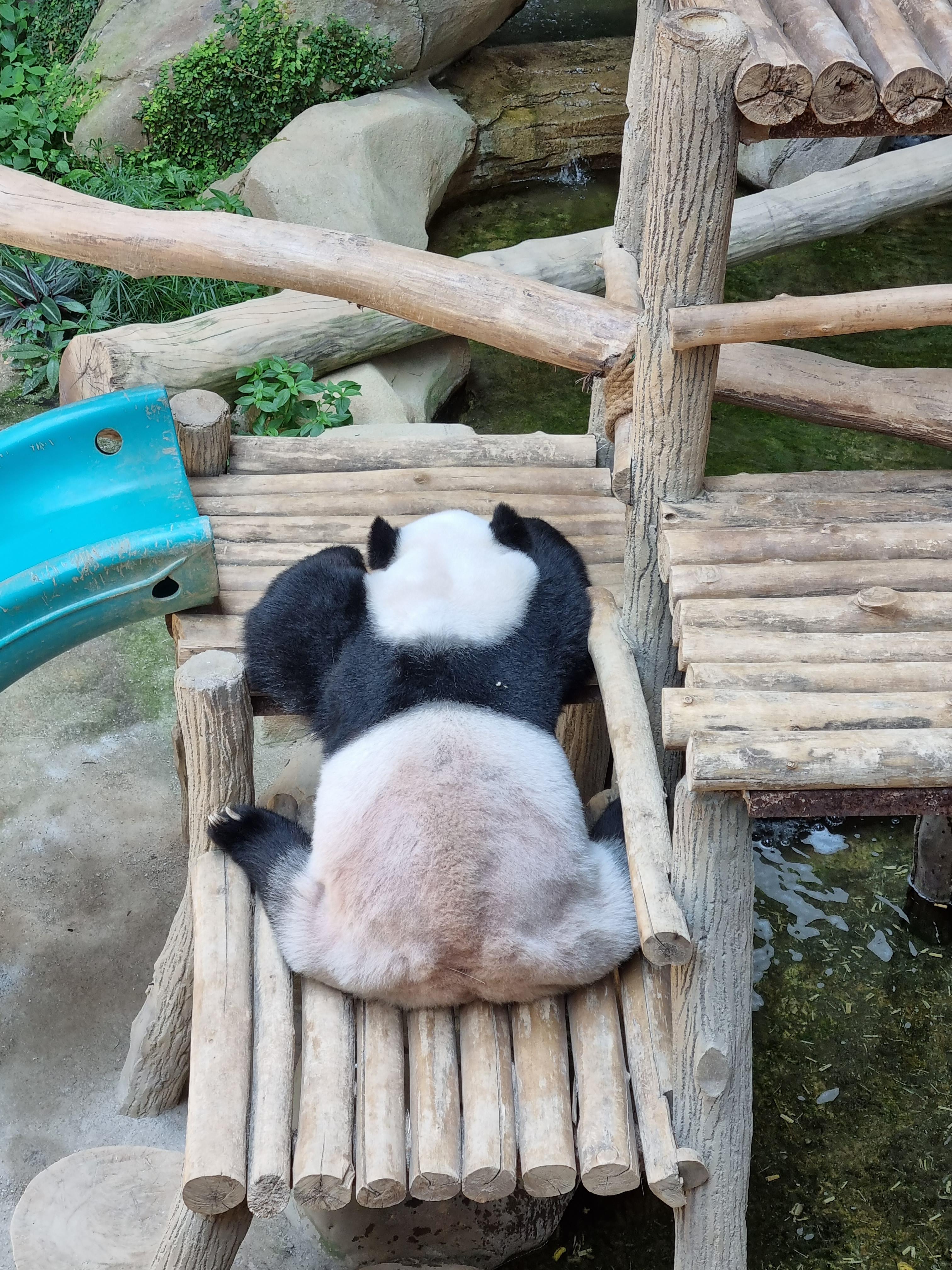 햇빛도 잘 들고, 공간도 꽤 넓은 데다 뒤쪽엔 작은 폭포까지 있고 놀거리, 쉴 곳 그냥 모든게 완벽한 곳이었다. 무엇보다 시원하다! 팬더들을 위해 이 정도로 세심하게 공간을 마련해뒀다는 사실이 생각보다 꽤나 감명 깊었다. 귀한 친구들이라 관리가 잘 되어있었을 것도 같았는데 솔직히 말레이시아에서 이 정도까지 기대하진 않았던 내 무지함도 동시에 느꼈다.