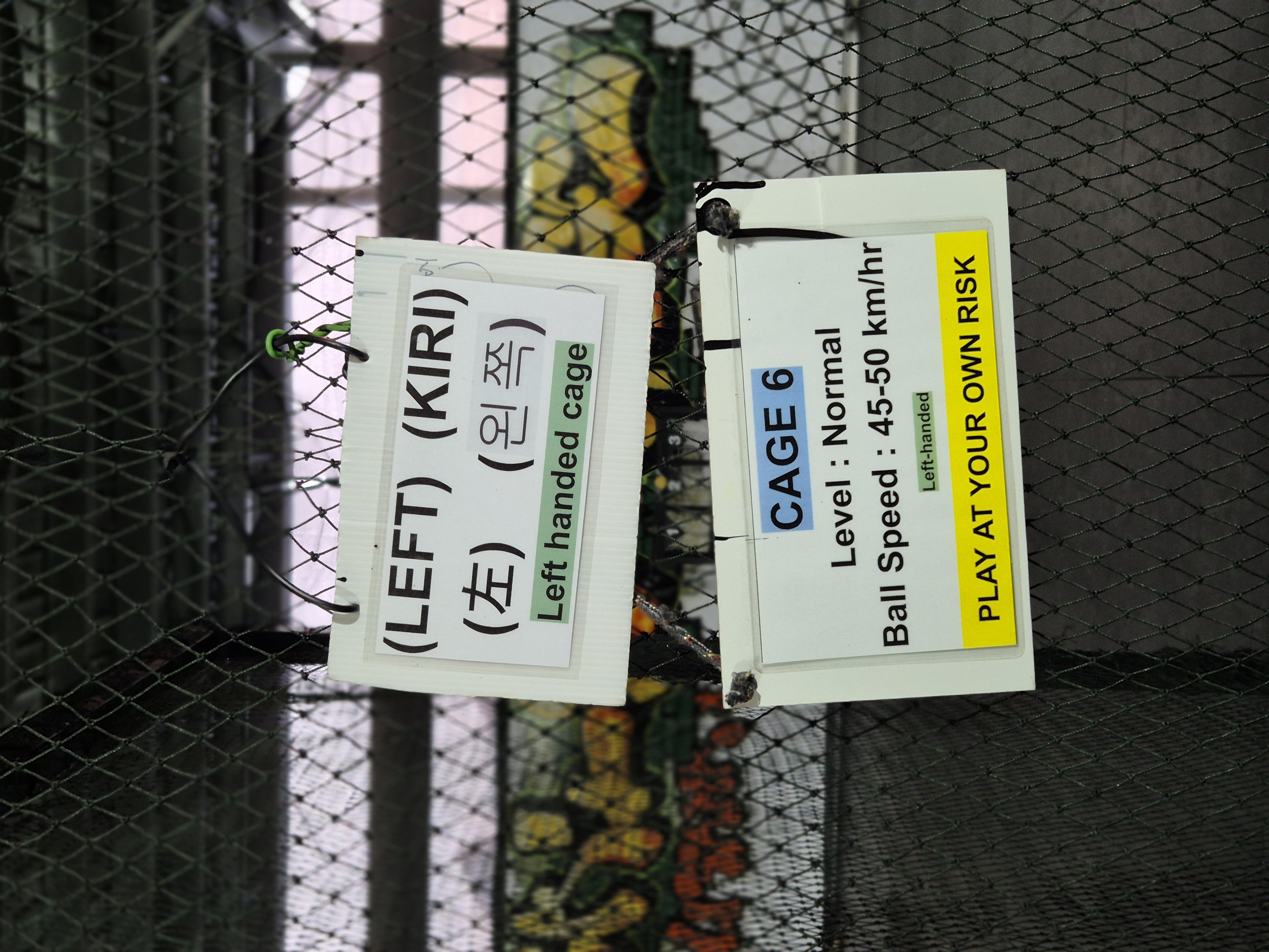 "케이지"는 왼손잡이용 코트가 하나 포함되어 있고, 나머지는 공 속도에 따라 "키즈(가장 느린 공)", "노말", "하드"로 나뉜다. 처음이라 "노말" 속도로 도전해봤다.