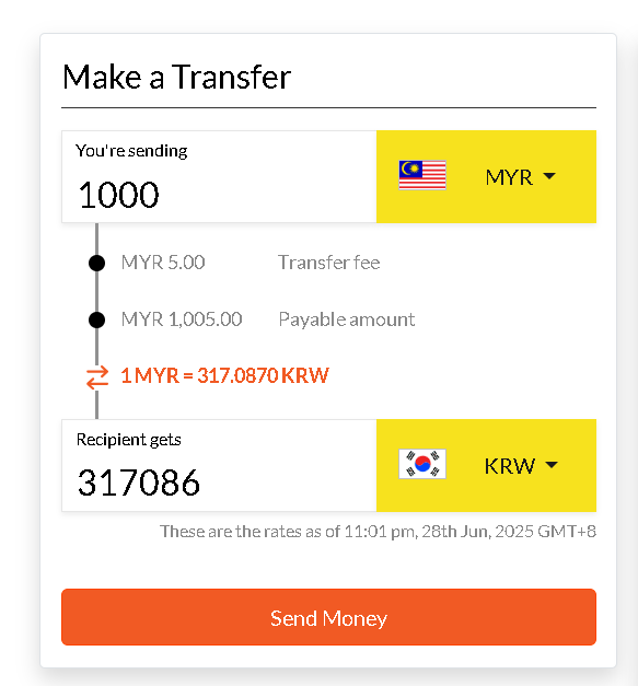 나는 상시 송금하진 않지만, 환율이 좋을 때에는 종종 말레이시아 → 한국 원화로 환전을 한다. 이번에 제일 도움을 받았던 건 바로 윤이 탄핵되기 직전, 말레이시아 환율이 미친 듯이 치솟았을 때였다. 그때 생각보다 많은 금액을 환전했는데, 진심으로 말해서 말레이시아에서 6년 넘게 살면서 본 환율 중 역대급 최고치였다. 덕분에 꽤 쏠쏠했다.