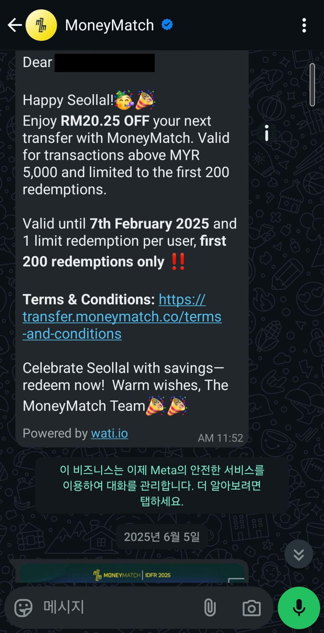 기본 수수료가 5 링깃 (한화 1,610원 정도)에다가 별도이 프로모션 코드가 꽤 쏠쏠하다. 설날이나 추석 같은 명절에는 한국 사람들을 대상으로 쿠폰도 제공해주고, 수수료가 너무 높은 다른 플랫폼 생각하면 머니매치를 안 쓸 이유가 없다.