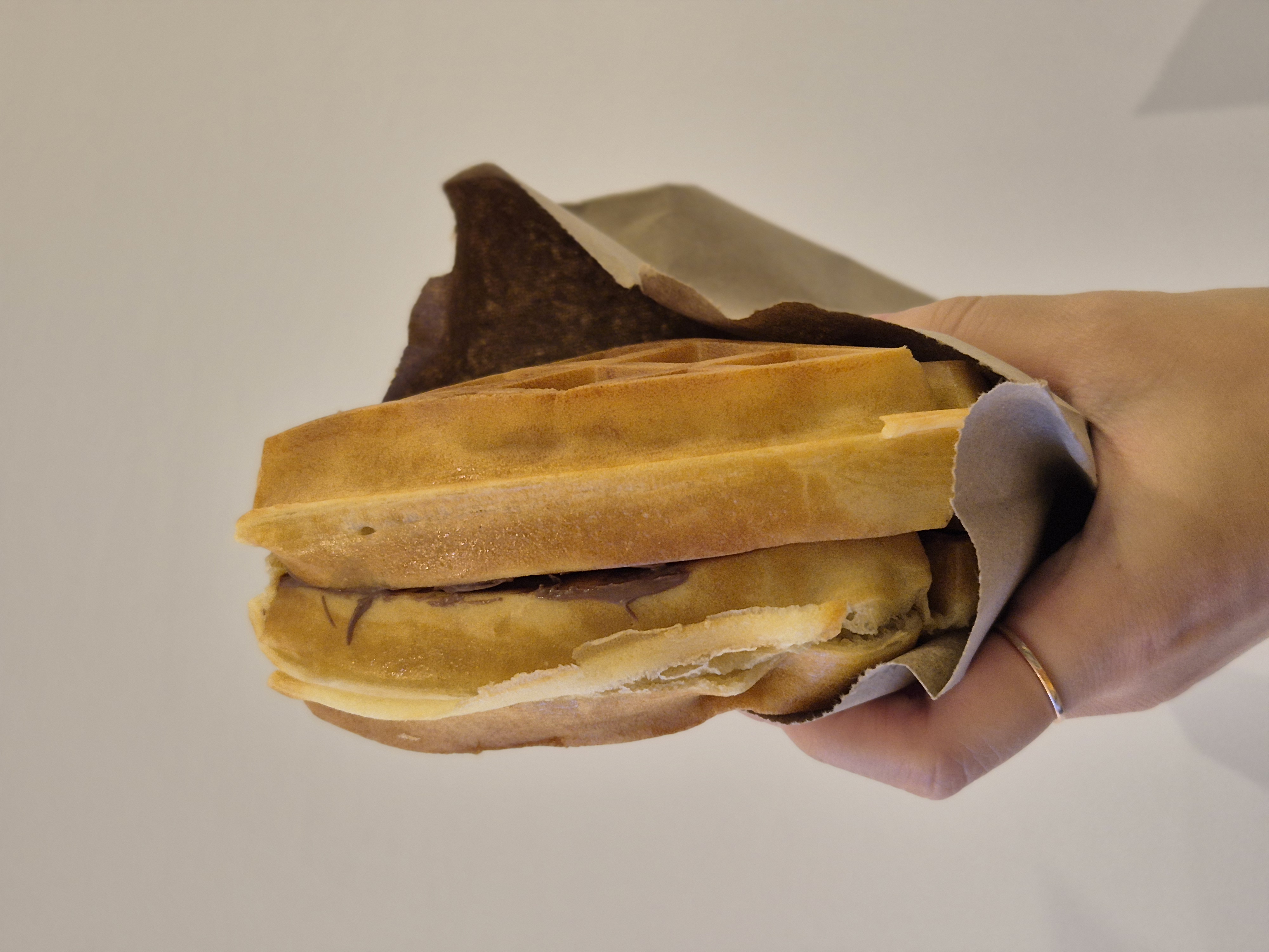 솔직히 말해, 평소 즐겨 먹는 [Chocolate + Butter]가 맛과 가격 면에서 훨씬 낫다. [초콜릿]이 없어 어쩔 수 없이 [누텔라]를 선택했지만, [누텔라]는 가격 대비 맛이 아쉬워 다시는 시키지 않을 것 같다. 이런 [와플]은 고급스러움을 추구하는 음식이 아니니, 비싼 [누텔라]보다 저렴한 [초콜릿] 소스가 오히려 더 맛있게 느껴졌다.