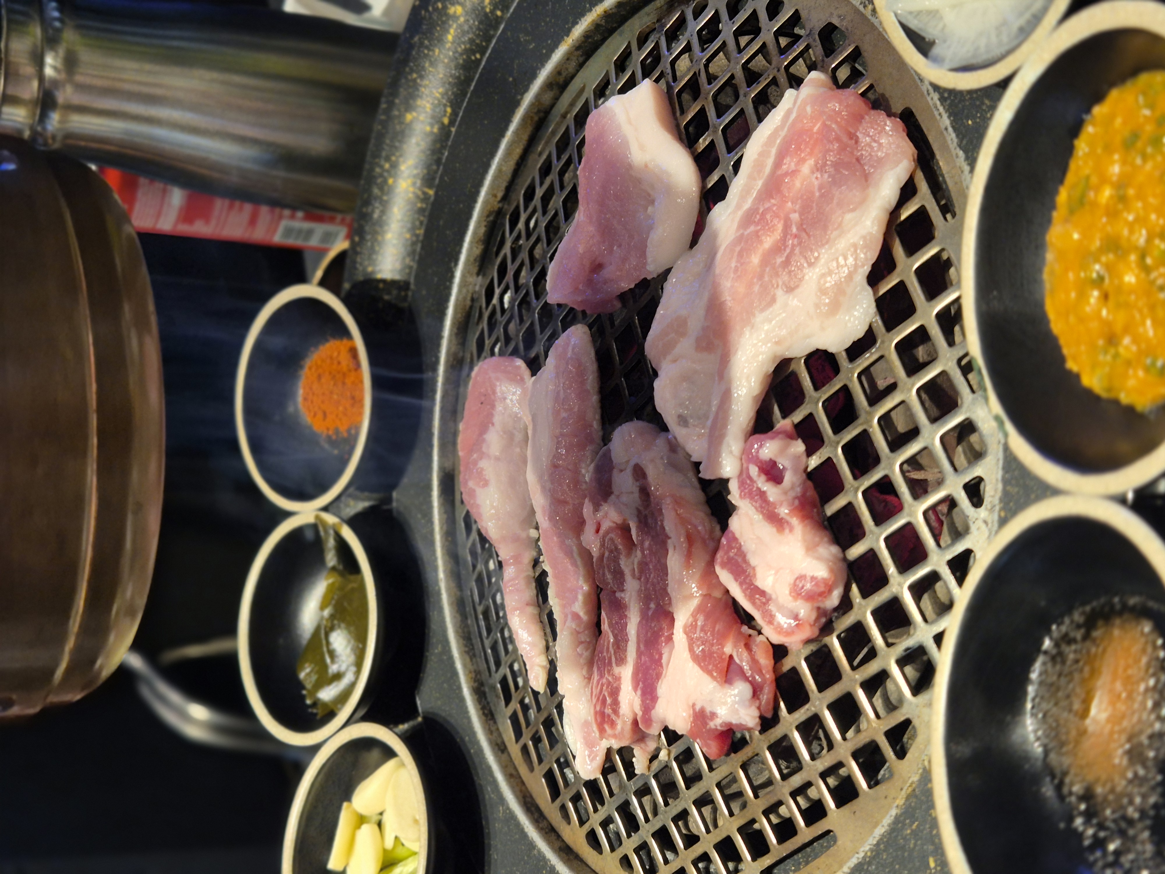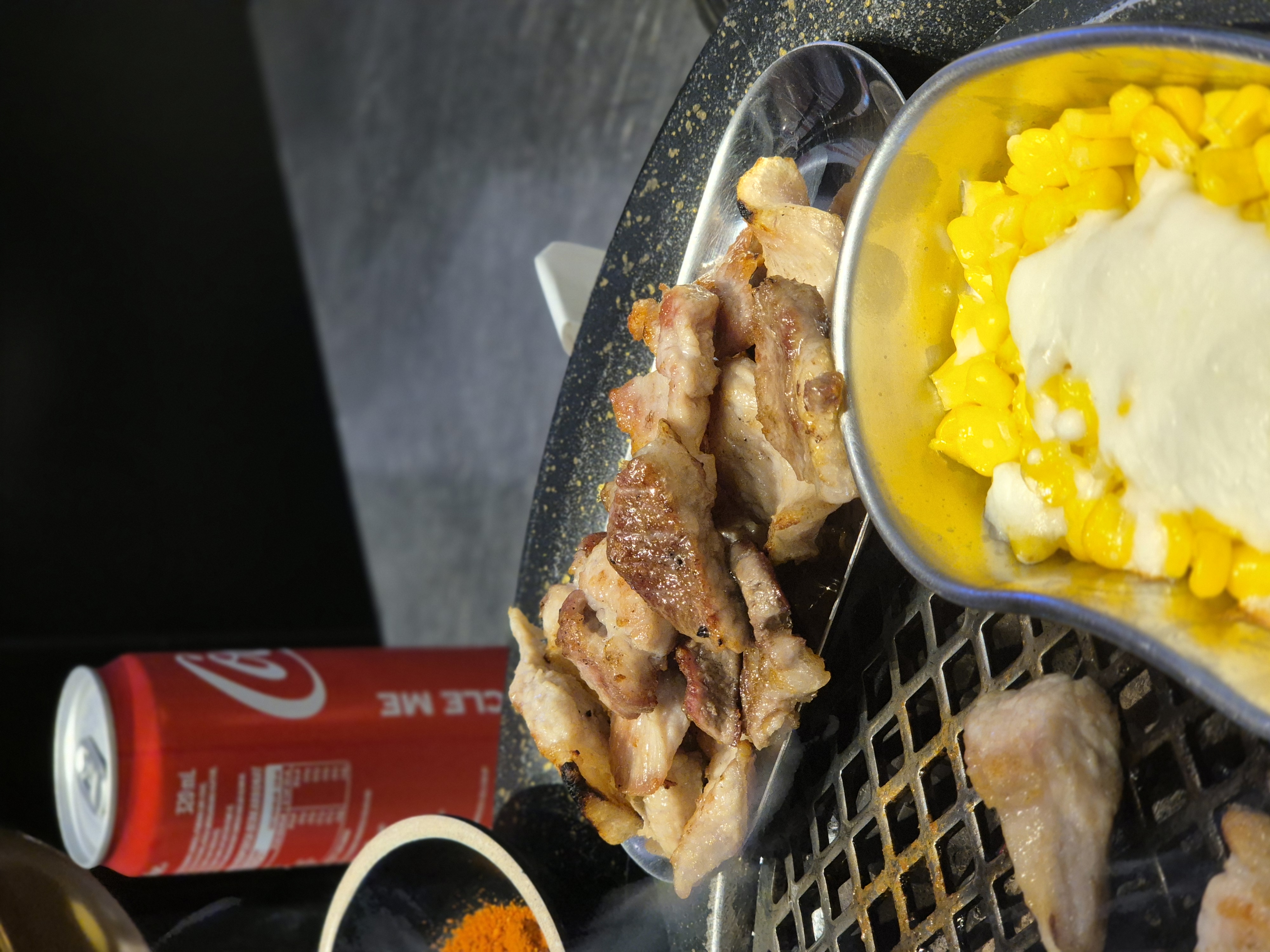 역시 좋았던 건 모든 고기를 내가 직접 구울 필요가 없었다는 점이다. 특히 양념 고기는 아무래도 잘 타고 굽는 게 어려운데, 그런 걱정 없이 직원분이 딱 적당하게 맛있게 구워주셨다. 옆에 콘치즈도 지글지글. 직원분이 한국과도 인연이 있으신 분이라 이런저런 얘기를 나누면서 고기를 구워주셨는데, 이 또한 너무 즐거웠다. 조금 이른 저녁이긴 했지만 친절하게 고기를 완벽하게 구워주셔서 배 터지게 맛있게 먹을 수 있었다. 콜라도 서비스로 주시고, 여러모로 아주 만족스러웠다.