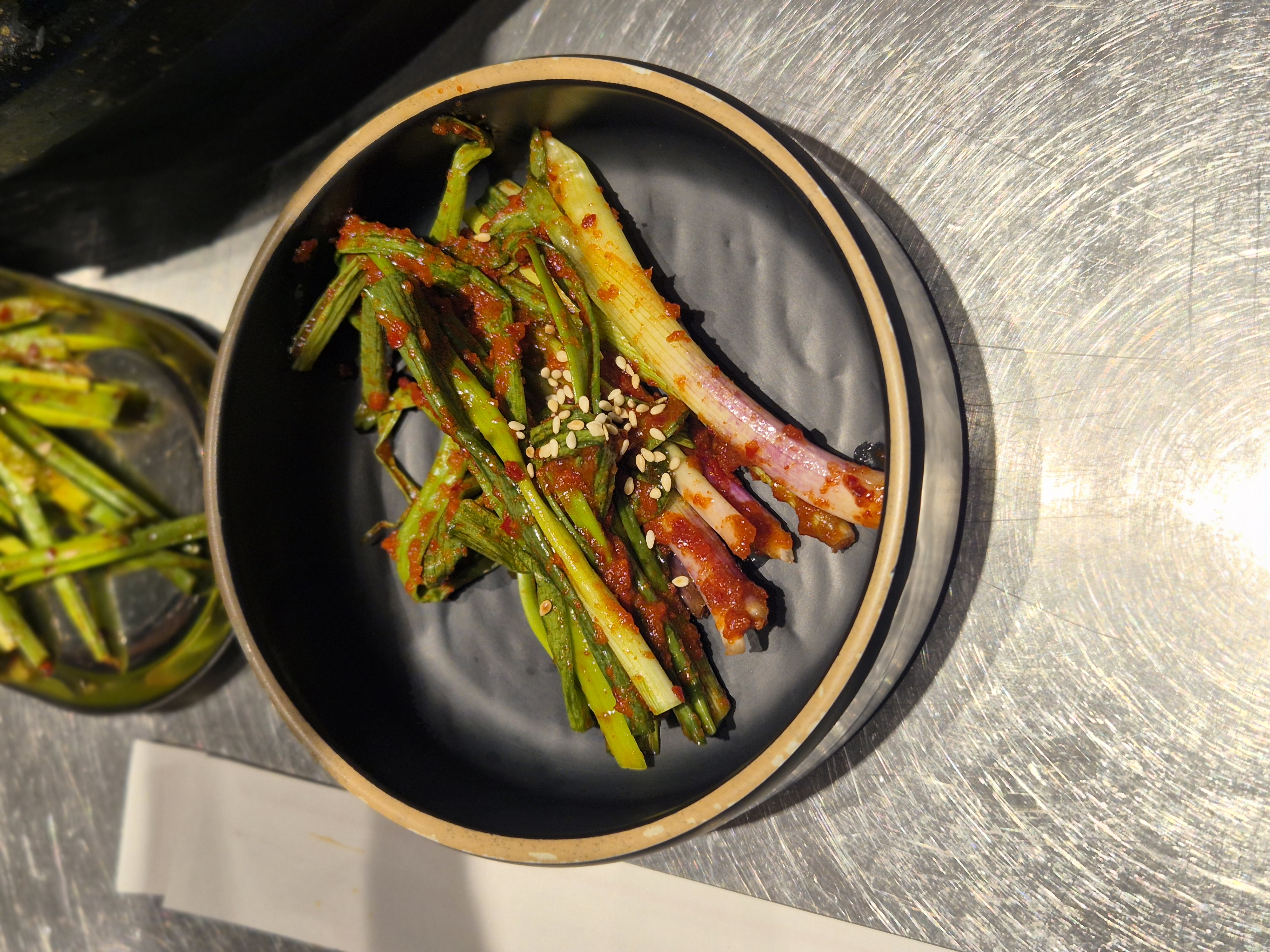 밑반찬은 김치, 부추김치, 파절이 정도였고 고기랑 곁들여 먹을 소스랑 장아찌가 꽤 다양하게 나왔다. 닭강정은 2조각만 나왔지만 바삭하니 너무 맛있었다.