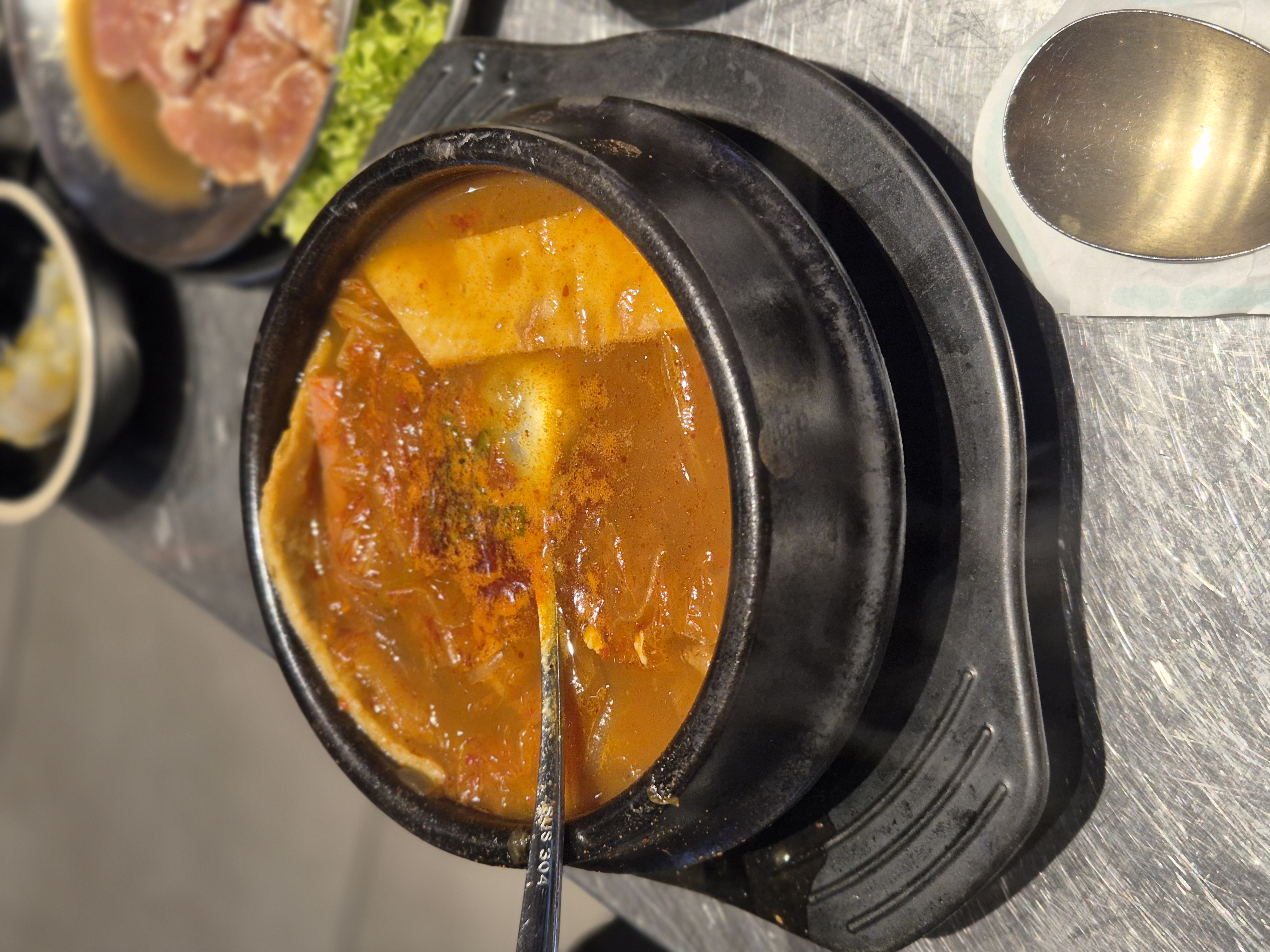 츠루하시에서 내가 제일 좋아하는 메뉴는 김치 소세지 찌개인데, [부안집]에서도 이 찌개가 나와서 기대했는데 묘하게 맛이 달랐다. 츠루하시는 할랄이고 [부안집]은 그렇지 않아서 그런가? 하지만 할랄 쪽이 더 맛있게 느껴진 건 처음이었다. [부안집] 찌개는 뭔가 맛이 살짝 빠진 느낌이라 조금 아쉬웠다.