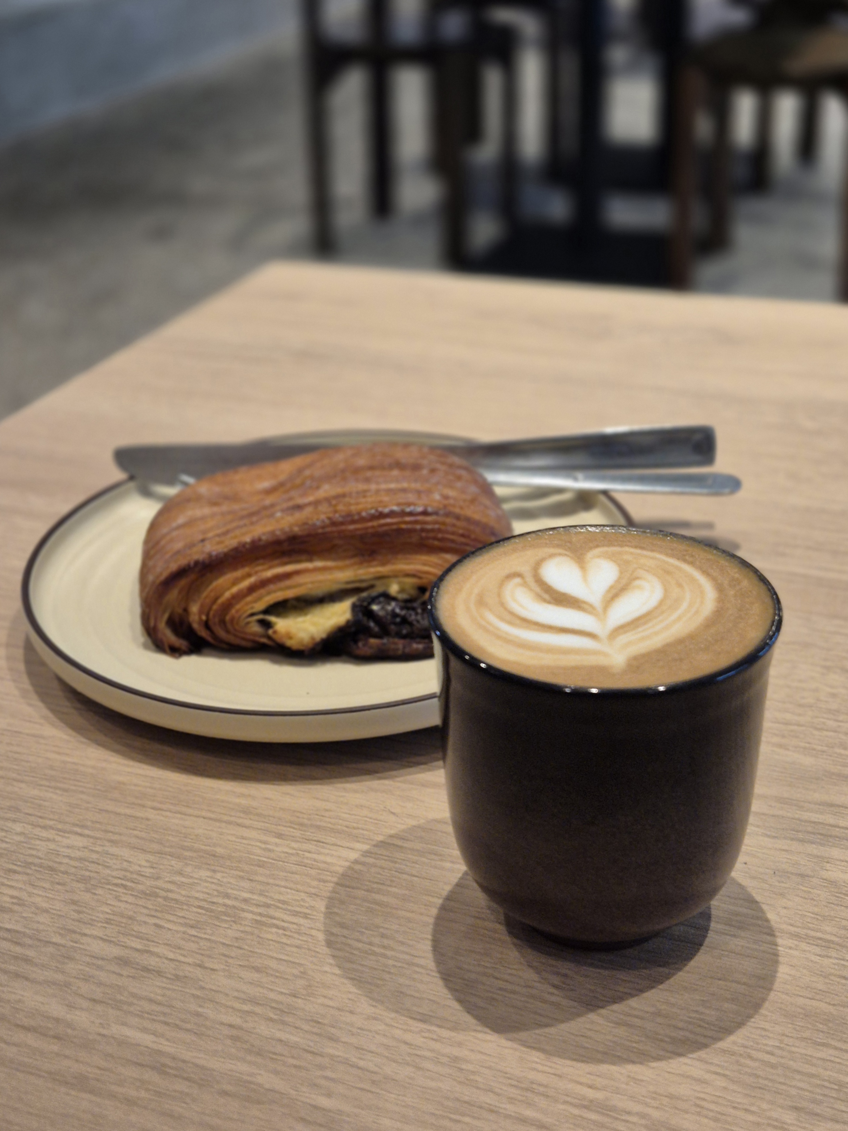 [Flat White]는 깔끔하고 무난해서 딱 좋았다. 특히 달달한 빵과 함께 먹으니 조합이 완벽했다. [Pain Suisse]는 바닐라와 초코가 들어간 페스츄리였는데, 초코가 내가 좋아하는 스타일은 아니어서 좀 텁텁한 느낌이라 아쉬웠다. 그래도 [Flat White] 덕분에 쑥쑥 잘 들어가서 남김없이 다 먹었다.
