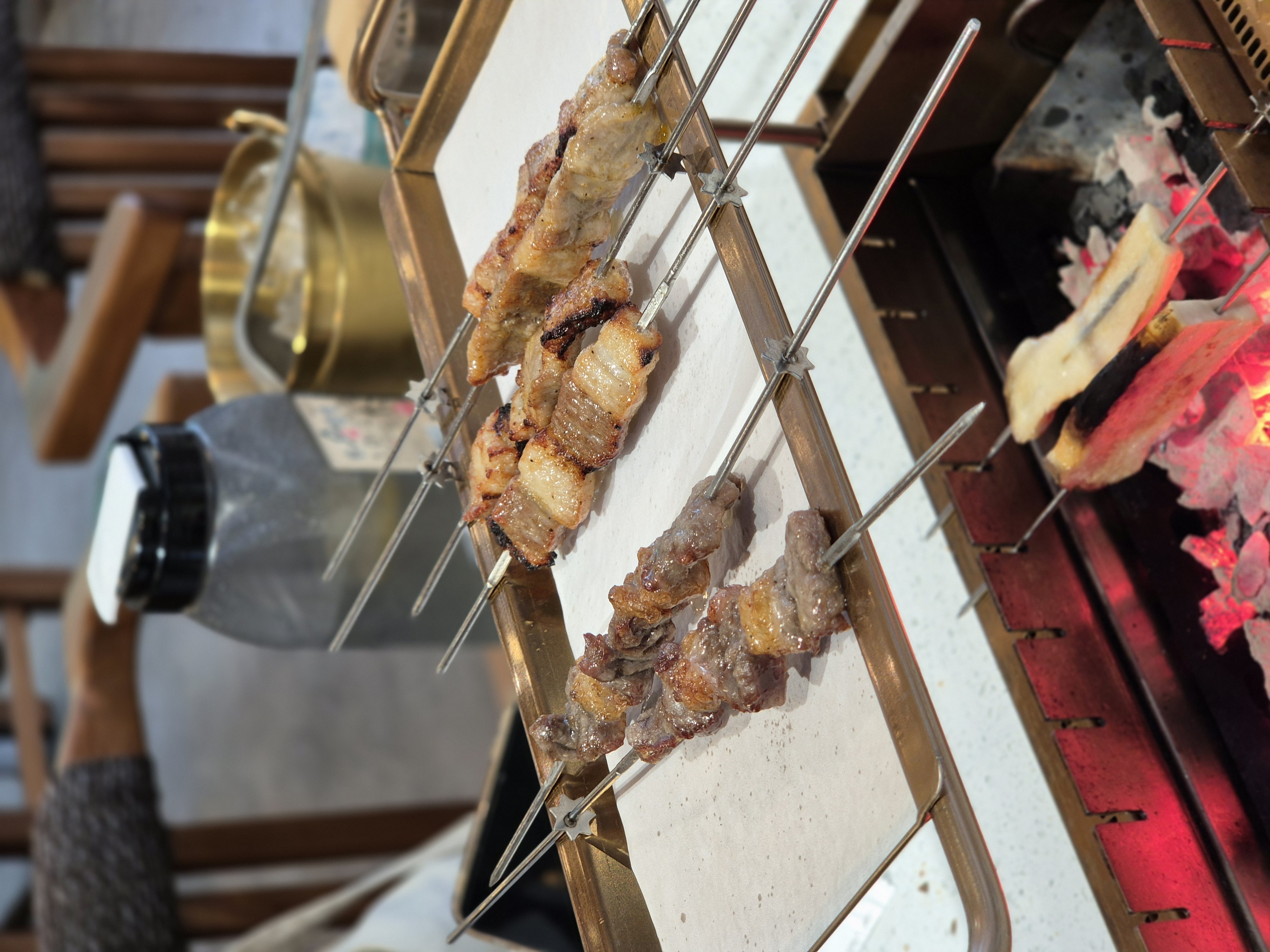 삼겹살, 양, 돼지껍데기, 소고기를 주문했는데, 양이 메인인 곳임에도 불구하고 돼지고기가 유난히 맛있었다. 다음에 재방문한다면 다른 고기는 과감히 패스하고 돼지고기만 골라 시킬 생각이다.